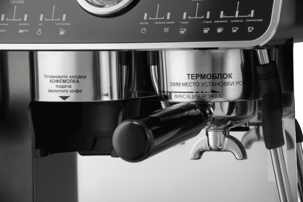 Важное замечание. Справа от термоблока с холдером есть трубка капучинатора. А слева от термоблока есть трубка для налива кипятка в чашку. Эта трубка может занимать разные положения. При выборе режима Американо поверните эту левую трубочку правее, чтобы кипяток при приготовлении Американо гарантированно попадал в чашку подставленную под холдером.