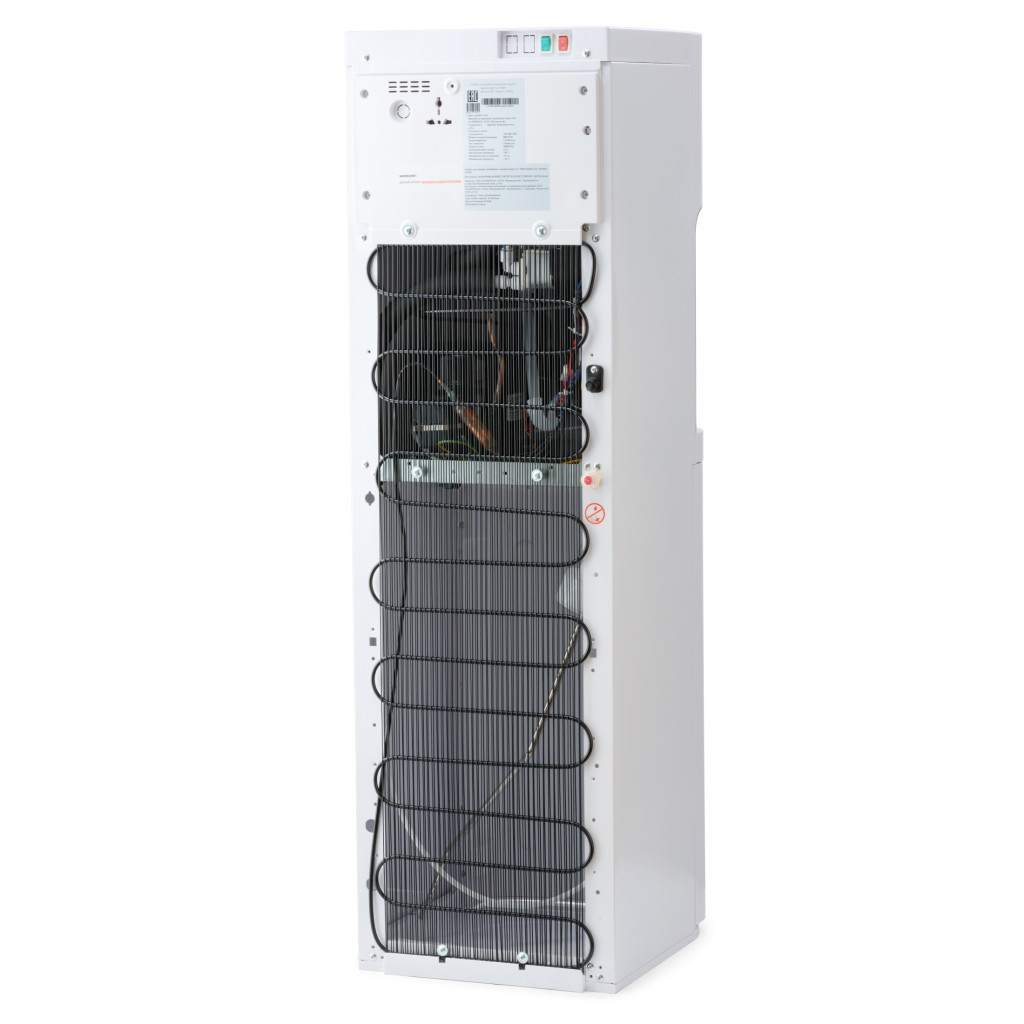 Данный кулер L07WK компрессорный, с нижним расположением бутыли. Три пушкрана для горячей, холодной, и для воды комнатной температуры. Есть блокировка крана горячей воды (защита от детей).