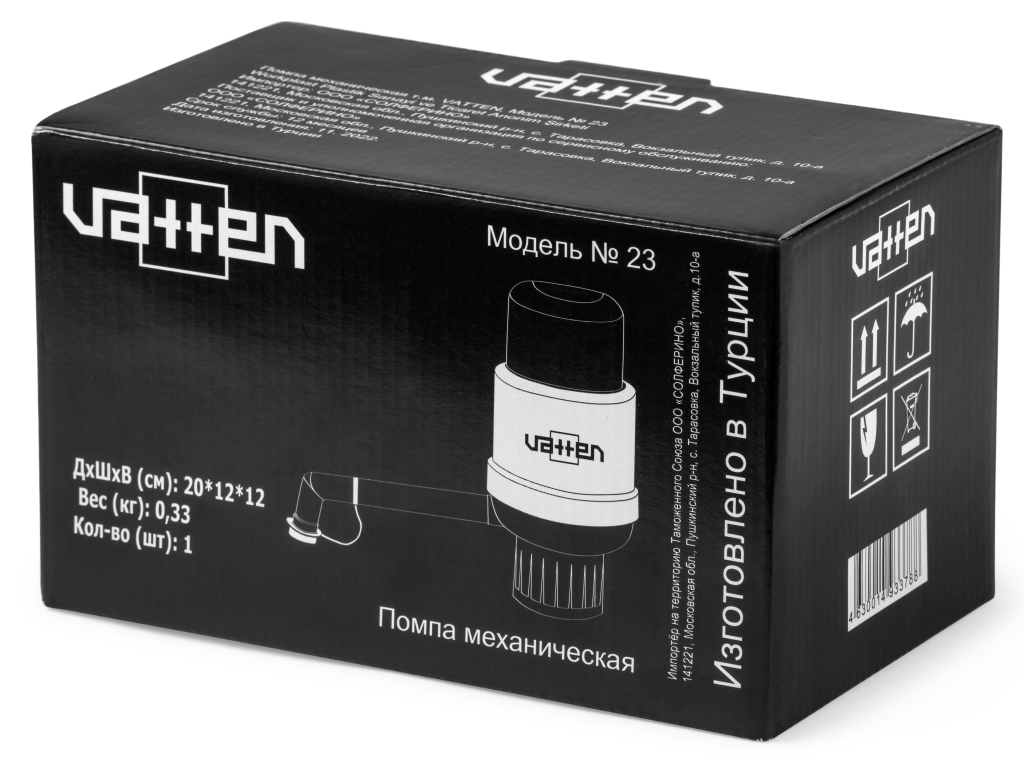 Механическая помпа для разлива воды. Подходит к бутылям объёмом 19 литров. Для фиксации помпы на горлышке бутыли следует с некоторым небольшим усилием просто одеть ее на горлышко бутыли, и опустить ее с легким усилием вниз до упора. При необходимости поправить до вертикального положения.