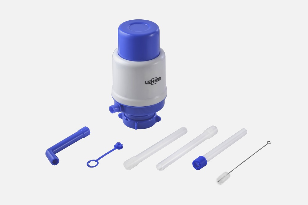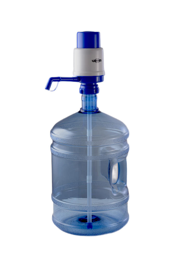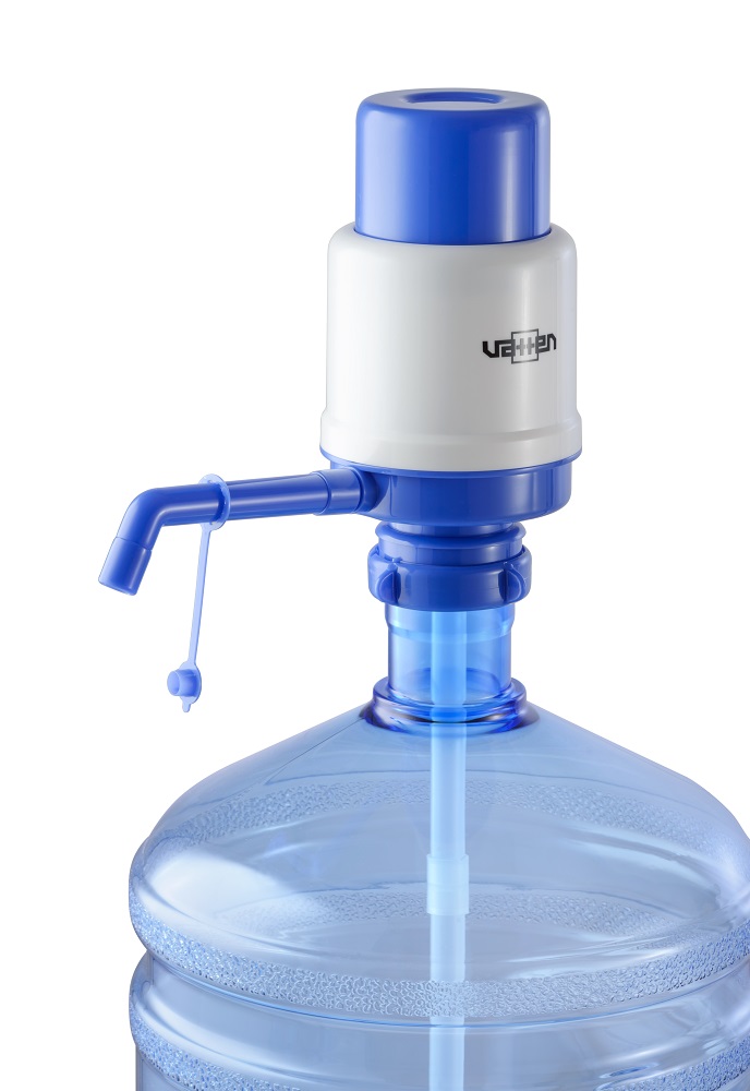 Механическая помпа для разлива воды. Подходит к бутылям объёмом 19 литров. Для фиксации помпы на горлышке бутыли следует с некоторым небольшим усилием просто одеть ее на горлышко бутыли, и опустить ее с легким усилием вниз до упора. При необходимости поправить до вертикального положения и зафиксировать поворотом фиксатора.