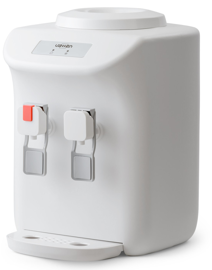 Настольный кулер c электронным охлаждением и нагревом. Современный дизайн. Корпус изготовлен из высококачественного, устойчивого к ультрафиолету ABS пластика белого цвета. Два классических для моделей этого класса крана с рычагом для нажима. Два LED индикатора (индикатор нагрева, индикатор охлаждения). Пригоден для эксплуатации в очень жарком климате - температура эксплуатации кулера от 10 до 38 градусов Цельсия.