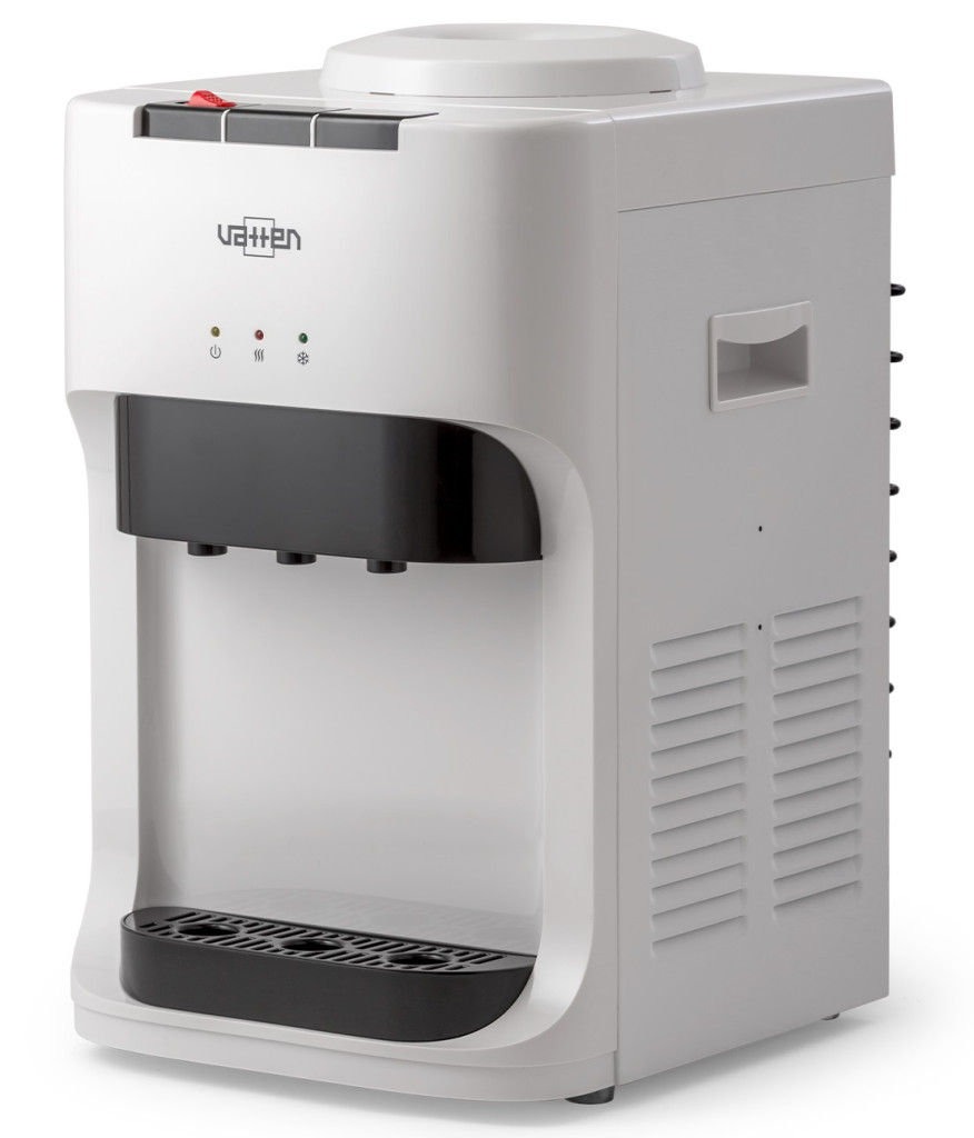 Настольный кулер для воды. С компрессорным охлаждением и с высокой производительностью нагрева воды - до 5.5 литров в час. Для дома. Для офиса.