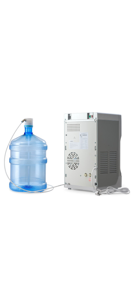 Бутыль с водой подключается к кулеру через гибкую трубку и может быть установлена в удобном месте, на расстоянии до 2 метров от кулера. Для заказа трубки большей длины Вы можете обратиться к менеджеру при покупке устройства.