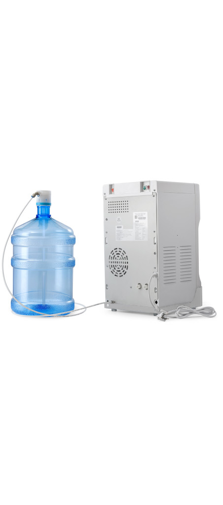 Бутыль с водой подключается к кулеру через гибкую трубку и может быть установлена в удобном месте, на расстоянии до 2 метров от кулера. Для заказа трубки большей длины Вы можете обратиться к менеджеру при покупке устройства.