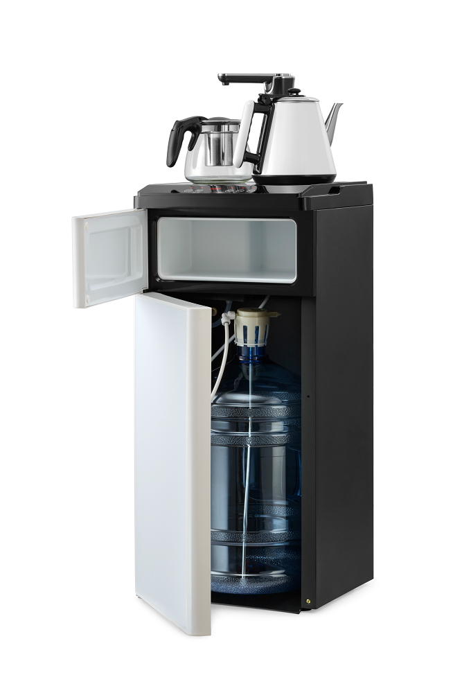 Кулер оснащен двумя чайниками: для заварки чая и для кипячения воды. Чайник для заварки имеет свое ложе для подогрева и поддержания температуры. Вода начинает нагреваться при двойном нажатии кнопки горячей воды. Нагрев отключается при достижении 100 °С. Встроенный дисплей отображает текущую температуру воды. Если вода в чайнике остыла, можно включить нагрев соответствующей кнопкой.
