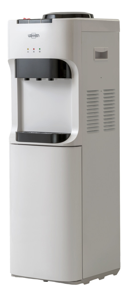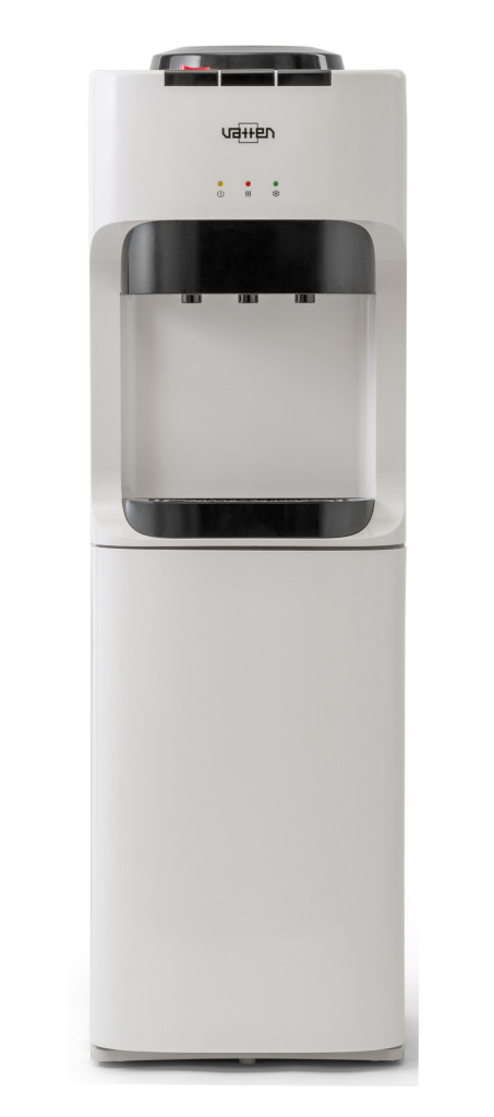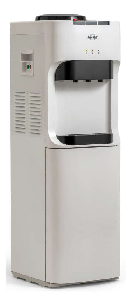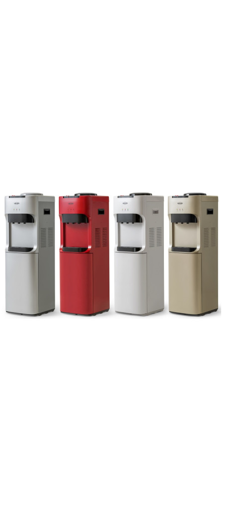 Напольный кулер для воды. С компрессорным охлаждением и с высокой производительностью нагрева воды - до 6 литров в час (мощность водонагревателя 650 Вт). Без шкафчика. Высота стандартная - 980 мм. Для дома. Для офиса.