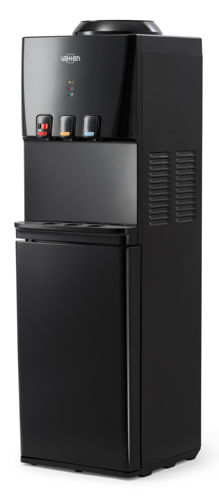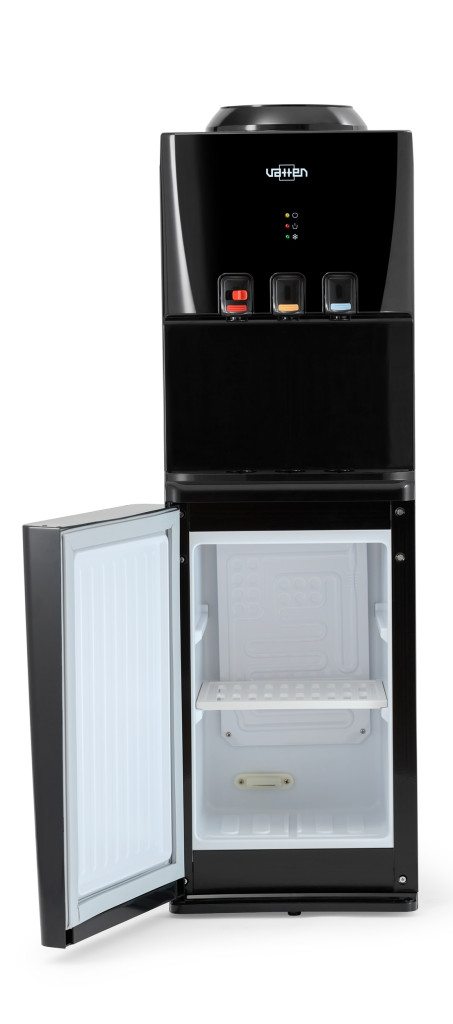 Напольный кулер для воды. С компрессорным охлаждением и с высокой производительностью нагрева воды - до 6 литров в час (мощность водонагревателя 650 Вт). Шкафчик - холодильник 18л. Высота стандартная - 980 мм. Для дома. Для офиса.